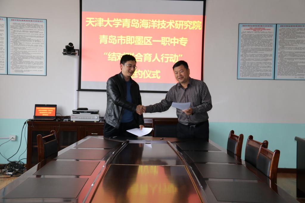 (青岛院常务副院长咸良与即墨区第一职专校长朱建学签定合作协议)