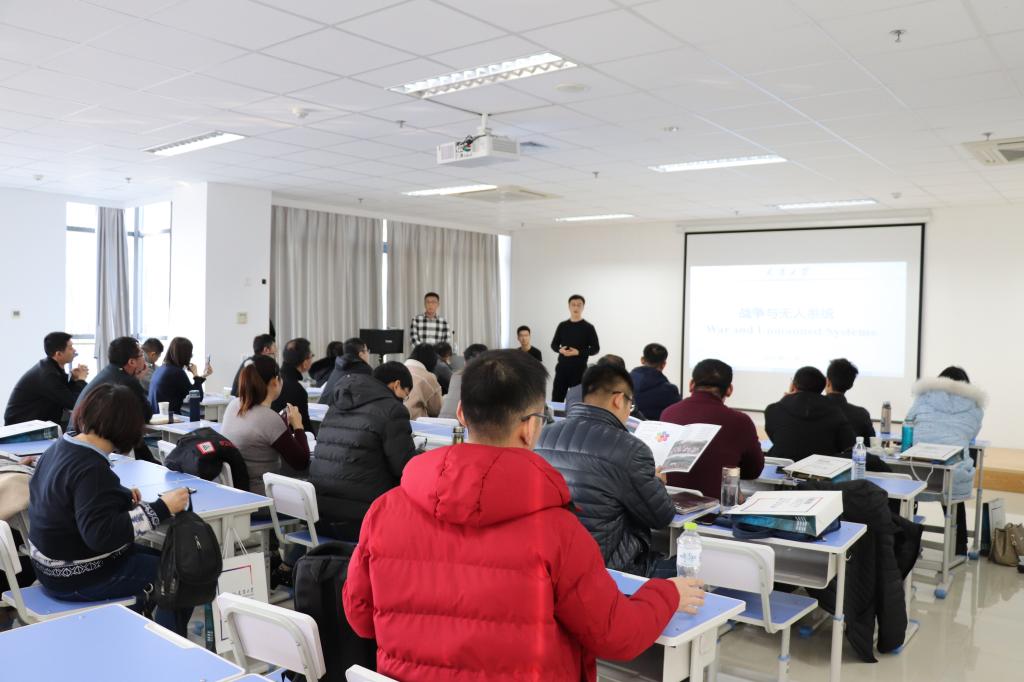 随后,《青岛市教师科技能力提升培训专题一:深海先锋海燕号系列》正式开讲,张宏伟副教授带领的海燕号水下滑翔机授课团队,包括冯挺、王言哲、法帅等科研老师。分别从AUV技术应用、战争与无人系统、流体力学角度看水下滑翔机,科研老师分从水下滑翔机的控制系统等方面给参加培训的学员做了深入浅出的讲述。