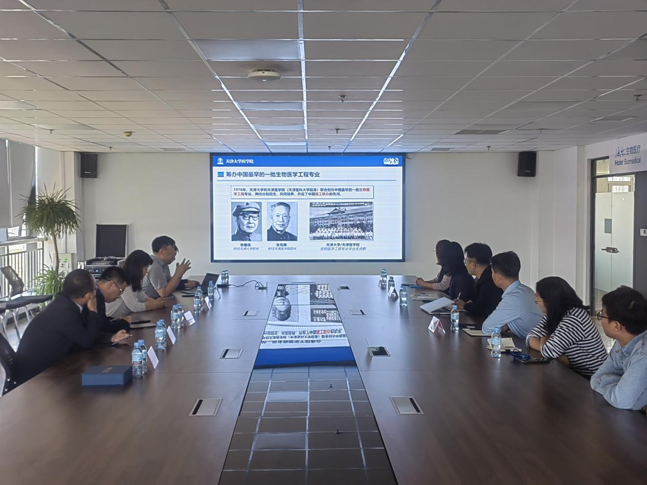 近日,天津大学医学科学与工程学院院长何峰等一行4人、青岛院常务副院长宋立斌、党支部书记王晓龙一同前往青岛海尔生物医疗股份有限公司走访调研,海尔集团战略发展部科技政策经理李春良、研发体系总监宋妤杰、公司相关部门负责人、以及天津大学医学院在海尔生物医疗公司就业学生参加此次调研交流会。