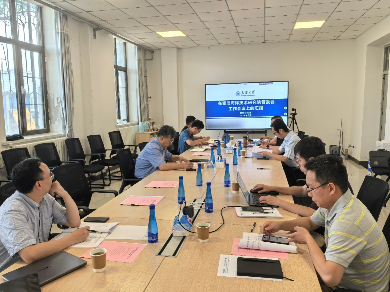 7月10日上午,天津大学青岛海洋技术研究院管理委员会(以下简称“管委会”)第一次会议在天津大学14教学楼召开。天津大学党委副书记韩庆华,合作办副主任于鑫平,人事处副处长苗志勇,科研院副院长张赫,机械工程学院副院长邓帅、副院长刁海,精仪学院副院长蒋佳佳,海洋学院副院长巩乐,青岛院副院长宋立斌参加会议,会议由韩庆华主持。