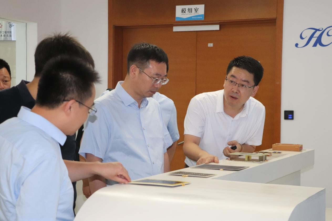 随后,一行人参观了海洋信息工程研究所、海洋观测与探测装备研究所,入驻企业及校友之家、展厅等共享区域。