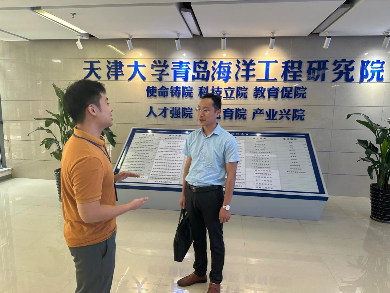 近日,南宁学院交通运输学院院长范毅、教授韩义勇、青岛北海密封技术有限公司总经理助理陈乐一行莅临天津大学青岛海洋技术研究院(以下简称“青岛院”)调研交流。青岛院院长刁海、常务副院长宋立斌、入驻企业代表李鹏浩及相关同事陪同调研。双方就人才培养、平台建设、成果转化、产业培育等内容展开交流。