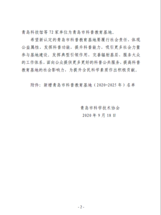 (关于新增青岛市科普教育基地(2020-2025年)的通知)