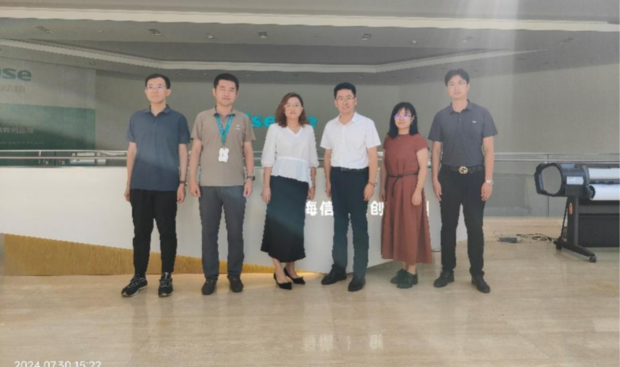 7月30日下午,天津大学青岛院常务副院长宋立斌、微电子学院副教授安文星、产业发展办公室主任王晓龙、科研主管谭明洋一行访问海信集团,开展技术需求对接交流座谈会。海信集团高级技术合作工程师杨小娜、消费者事业群高级科技管理工程师徐冰倩、家电研发中心通用平台部副总经理张旭及相关部门技术负责人十余人参与了此次交流。