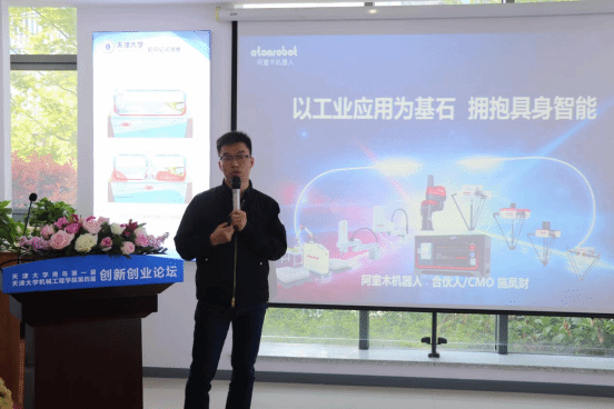 在专业领域报告环节,天津大学机械工程学院教授连宾宾、阿童木机器人合伙人/辰星(天津)自动化设备有限公司执行副总经理施凤财分别进行了《机器人与智能制造》《以工业应用为基石,拥抱具身智能》主题报告。交流环节中,天津大学管理与经济学部MBA中心主任白彦壮详细介绍了天津大学2026年入学MBA项目。天津大学校友和企业家们也在互动交流环节积极发言,分享自己在创新创业过程中遇到的问题和挑战,并就如何加强校友之间的合作、促进科技成果转化等问题展开了热烈讨论。