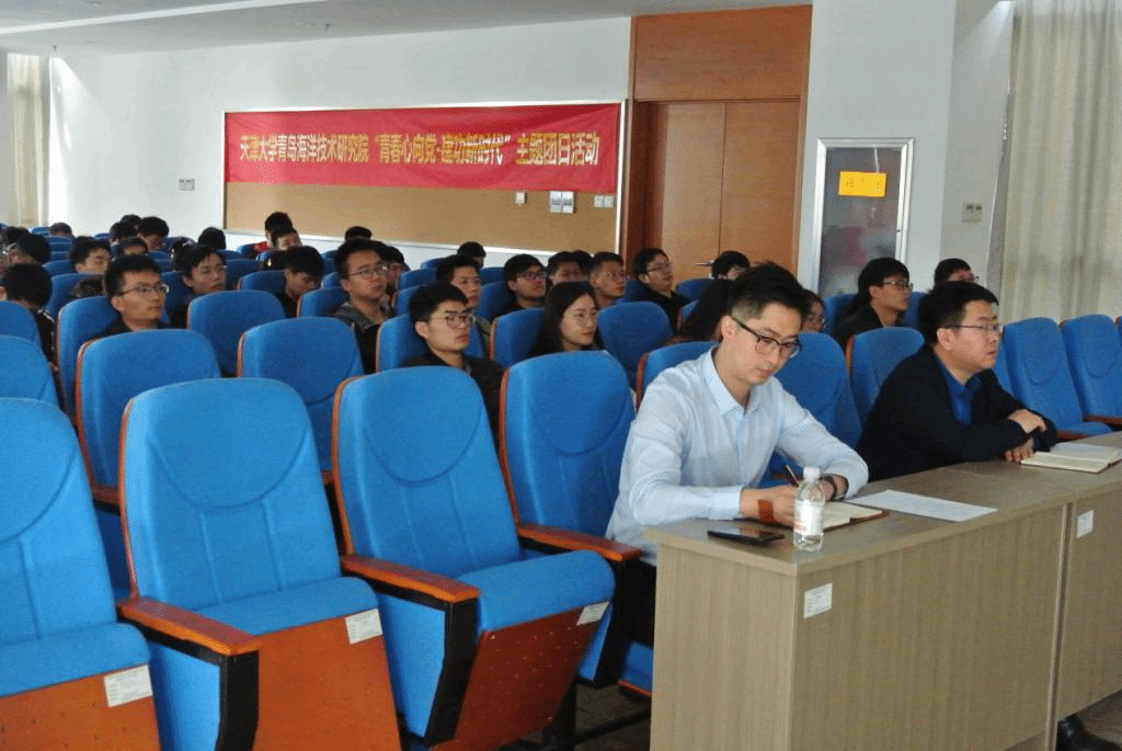4月30日上午10:30分,人民大会堂召开了纪念五四运动100周年大会,中共中央总书记、国家主席、中央军委主席习近平将出席大会并讲话,天津大学青岛海洋技术研究院副院长宋立斌、党群与学生工作部王晓龙老师与在院全体学生于五楼报告厅共同观看直播,认真学习了习近平总书记五四青年节讲话的重要精神。