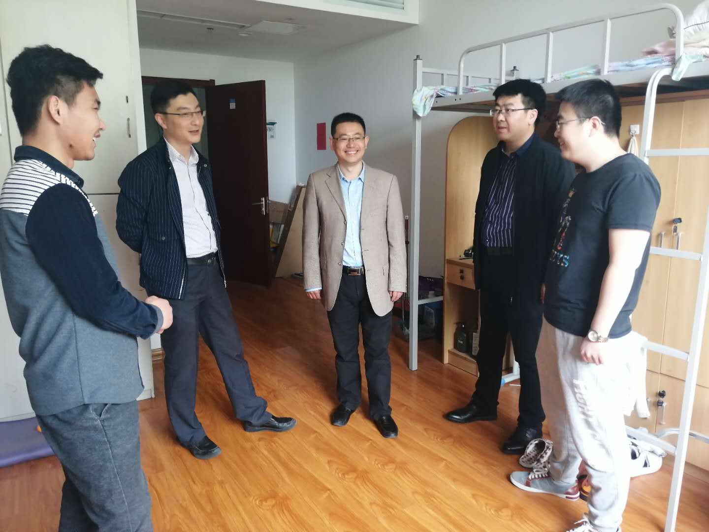 杨明海院长走访了青岛院男生宿舍,对宿舍安全隐患排查和消防安全检查工作进行了解和指导,并与宿舍内学生进行亲切交流,听取同学们对宿舍和生活服务设施的意见,询问学习和生活情况、了解学生思想动态,对宿舍管理的制度建设、寝室文化建设等进行现场指导。