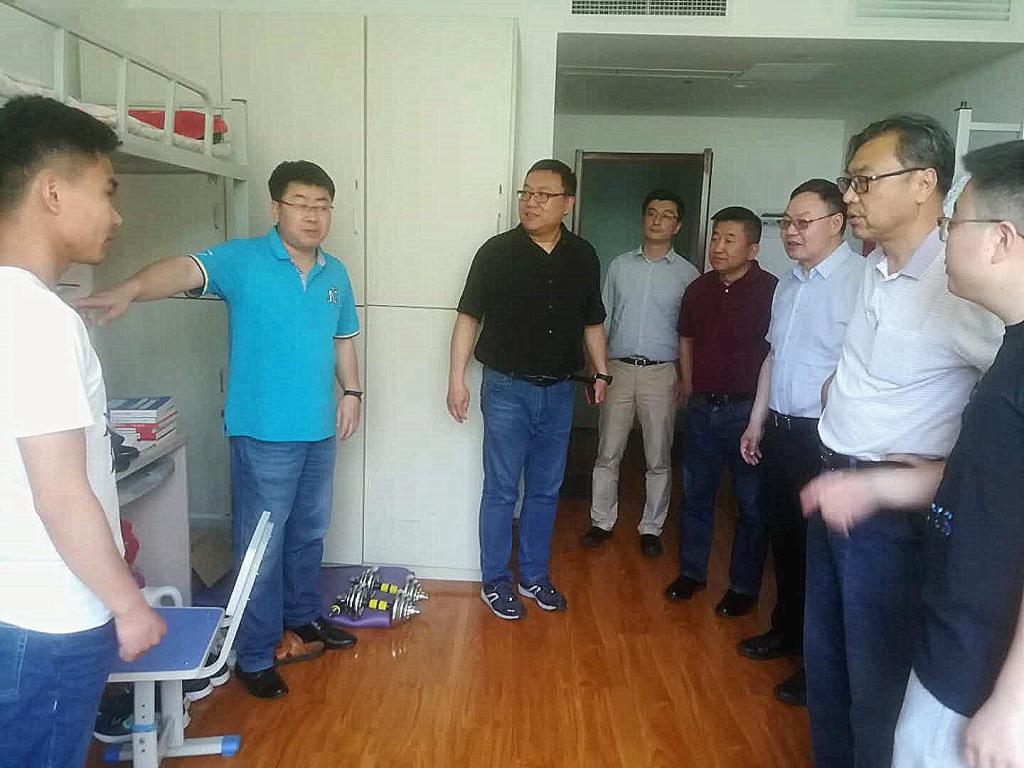 林漫群一行首先来到学生宿舍。咸良和宋立斌从学生宿舍内部硬件设施、学生入住现状进行了全面的介绍。林漫群强调,学校一定要加强对学生的引导、管理、监督,避免学生使用大功率电器;要多提醒学生规范用电,谨记出门关电源;要提高认识,做到宿舍消防工作警钟长鸣,未雨绸缪,防患未然。