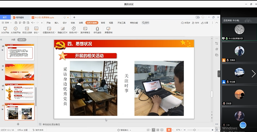 在答辩环节中,学员们通过线上线下PPT的展示,向组织汇报培训收获,汇报思想状况、实际表现等,接受组织考核。