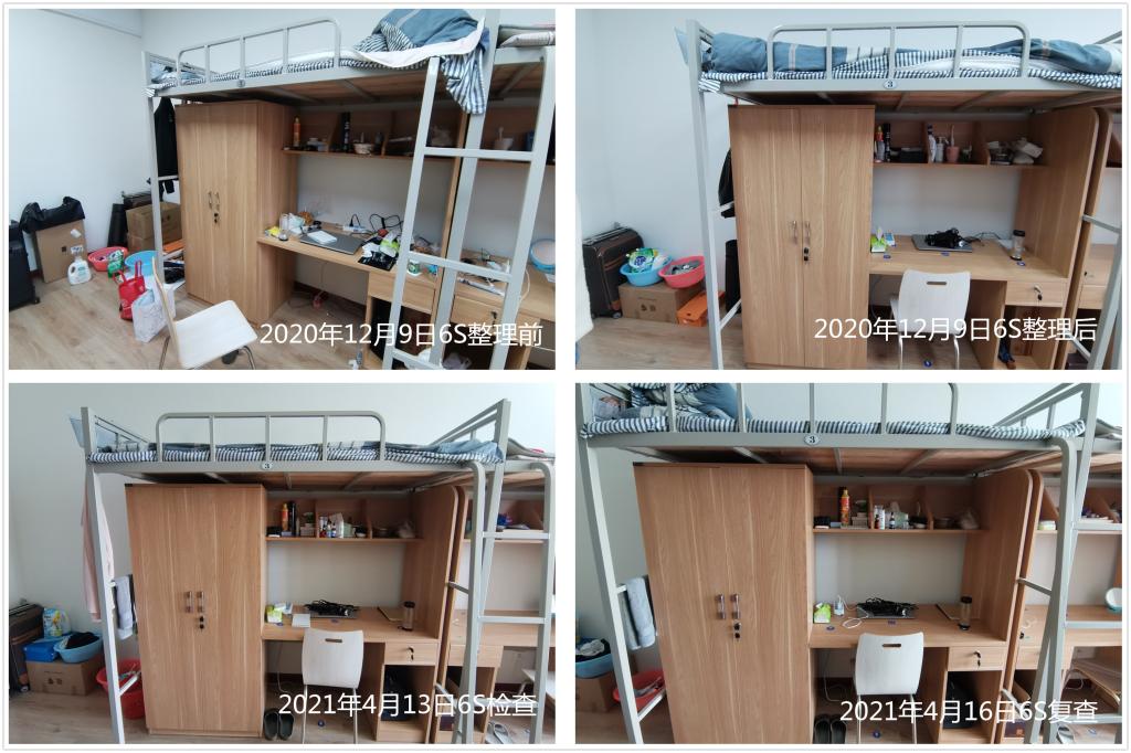 随着宿舍6S标准化管理工作的推进,宿舍成员纷纷表示,经过6S整理后,感觉宿舍焕然一新,空间变得不再拥挤狭小,心情也变得明快舒畅,对宿舍内部这个小集体更有亲近感、归属感,经过此次活动锻炼,学会了从有效规范身边事物到自觉约束自身行为的方法,提升了改善自身素质、形象的意识。