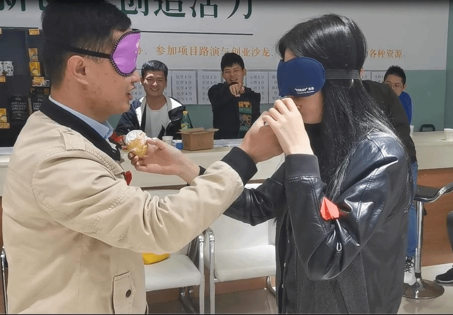 联谊会游戏分为“眼色游戏”、“传递面粉游戏”、“即使我聋了,也能听懂你的话”、“我的同桌是学霸”等环节,现场互动不断同学们在活动的过程中,还学习到了很多物理化学心理等多个领域的知识,同时也认识了很多小伙伴,收获颇多。