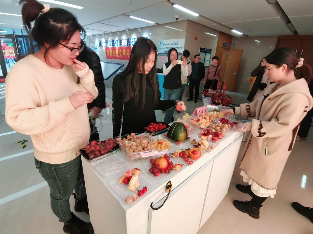 在水果拼盘环节,在现场还设有品尝区,在院师生纷纷前来品尝,一同欢度水果文化节。