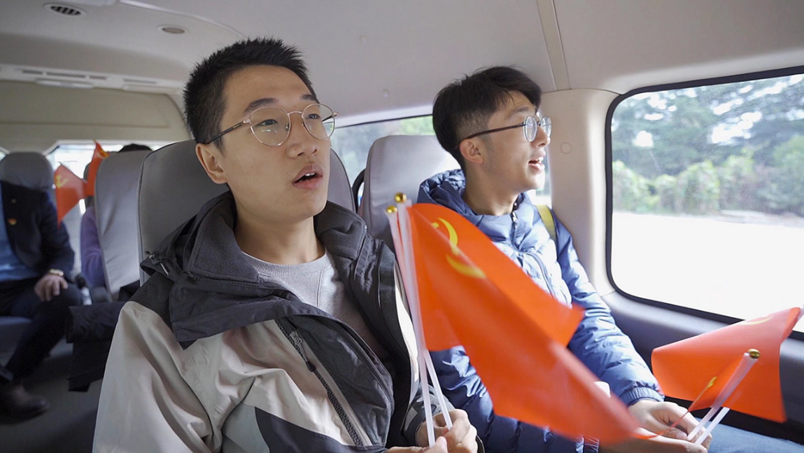走出校园上了大巴,“我爱我的国,我爱我的家,国是我的国,家是我的家”一首首耳熟能详的红歌在大巴车上唱了起来,党员们一边唱红歌一边摇动手中的党旗,表达了对党、对国家的热爱之情,将氛围推向了高潮。
