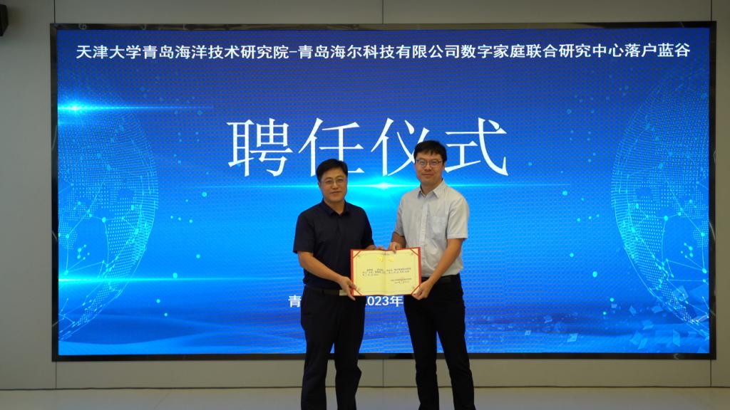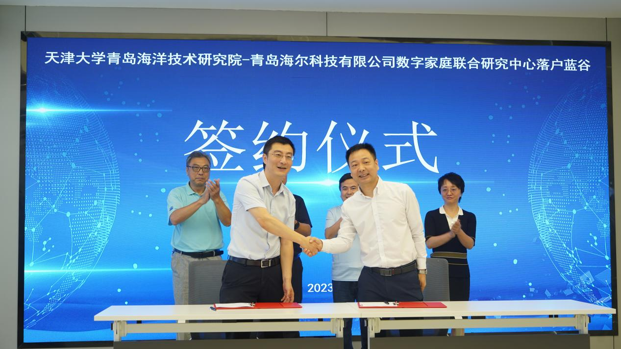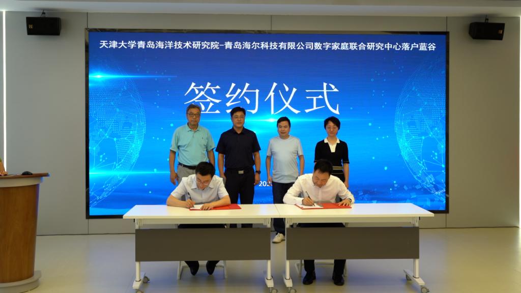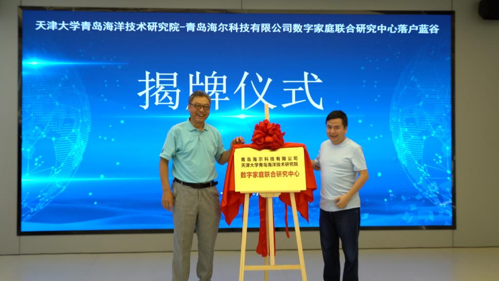 7月20日,天津大学青岛海洋技术研究院-海尔科技数字家庭联合研究中心签约揭牌仪式在蓝谷人才之家举行。蓝谷管理局副局长王厚恩,天津大学青岛海洋技术研究院理事长刘耀昌,海尔智家副总裁海尔全屋智慧总裁邓邱伟等出席签约揭牌仪式。